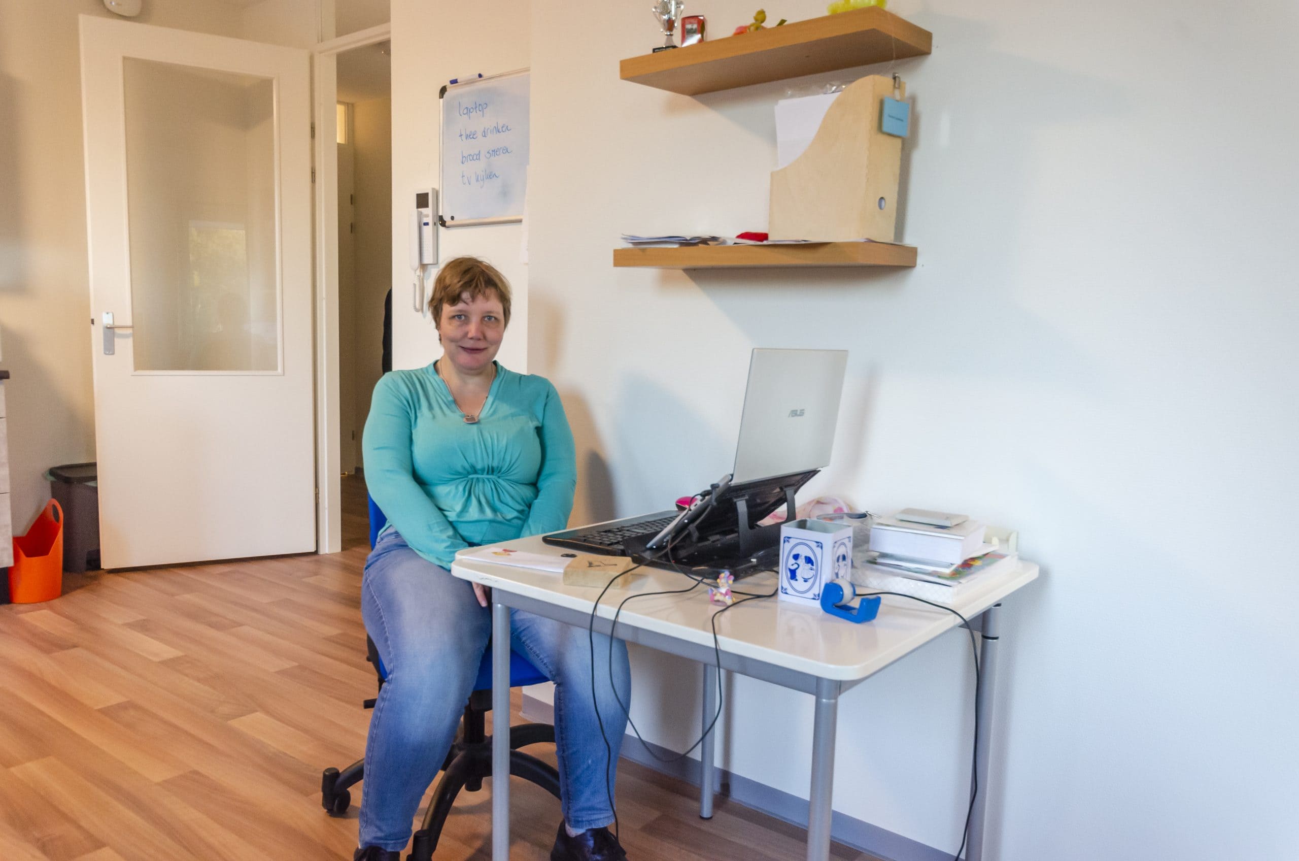 Sandra woont nu drie jaar met haar groepsgenoten in het Huis van Leusden, een multifunctioneel gebouw waarin onder meer ook het gemeentehuis en koopappartementen voor senioren zijn gevestigd. Spannend was het zeker. Een verhuizing is altijd een onderneming. Daarnaast kreeg Sandra voor het eerst in haar leven echt een plek voor zichzelf. Ze is enthousiast over haar nieuwe onderkomen. ‘Ik slaap beter want het is veel minder gehorig dan op de Steigbeugel. Het is ook fijn dat je lekker dicht bij het winkelcentrum zit. En de Korf, waar we wel eens gaan borrelen en bowlen, is zo ongeveer om de hoek.’