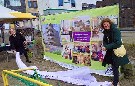 Op een frisse, maar zonnige zaterdag, eind februari 2023, kwam op de hoek van de Agamemnonsingel en de Van Trojestraat in Almere Poort een grote groep mensen bij elkaar. Hier werd die dag tijdens een feestelijke bijeenkomst het startsein gegeven voor de bouw van ‘t Homerushuis. Wethouder Froukje de Jonge en oud hockey international Minke Booij onthulden daarbij symbolisch het bouwbord.