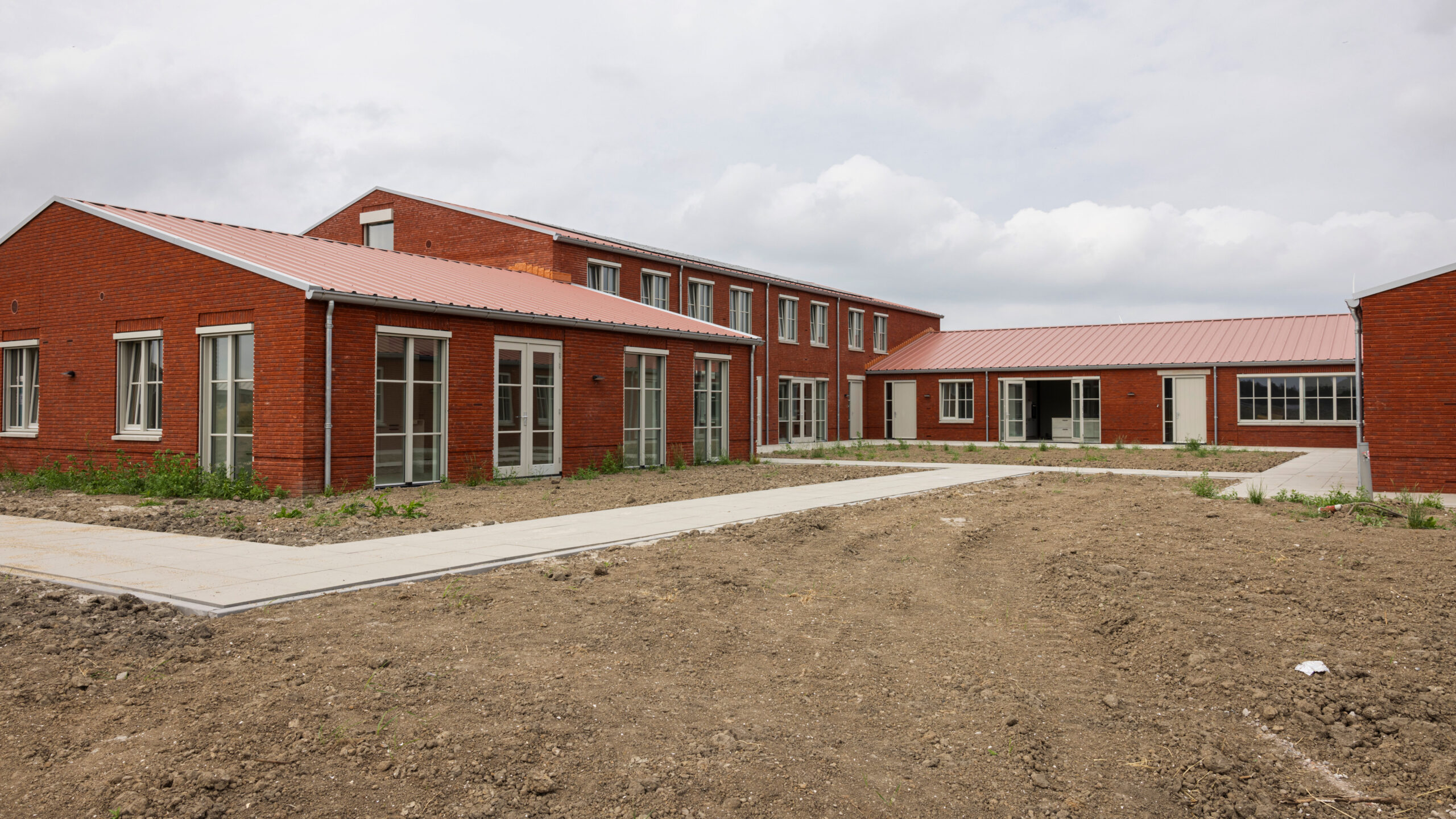 Caroline: “Ook heeft de hoeve allerlei details die het verschil maken. Zoals de oranje stenen, ingemetselde randjes en oranje voegen in de gevels. En de lateien boven de ramen die net iets terugvallen. Belangrijk is ook de ruitverdeling in de ramen, de Wiener Sprossen. Allemaal details die het idee van een hoeve benadrukken en eraan bijdragen dat Nobelhof eruitziet als een woongebouw. Alle details hebben we zelf bedacht en kunnen uitkiezen. Daarvoor hebben we van de Alliantie, uiteindelijk de eigenaar van het gebouw, echt veel ruimte gekregen.”