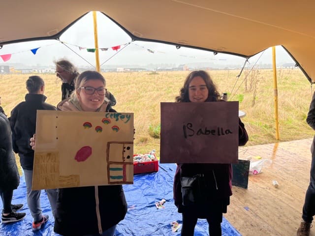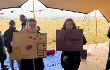 Zondag 3 oktober 2021 was een bijzondere dag voor de initiatiefnemers, ouders en toekomstige bewoners van Nobelhof. Na vijf jaar van voorbereidingen werd met een picknick op de bouwkavel het startschot gegeven voor de daadwerkelijke realisatie van het plan. Midden in het veld was door Zenzo een tent met een houten vloer opgezet. Die bood bescherming tegen regen, wind en modder. Terwijl in het veld de weergoden tekeergingen, werd iedereen onder het genot van koffie, krentenbollen en zelfgemaakte lekkere hapjes bijgepraat over de stappen die nu gezet gaan worden. Een aantal ouders gaf zich al op voor diverse werkgroepen die in de komende tijd hun bijdrage gaan leveren aan alles wat nog aan werk verzet moet worden. En intussen maakten de toekomstige bewoners onder begeleiding van een kunstenaar schilderijen van hun toekomstige woonplek. Nobelhof gaat er nu echt komen! Op een fantastisch perceel van 14.000 m2 in Oosterwold kunnen de toekomstige bewoners straks fijn wonen. In een groene omgeving, maar niet weggestopt in het groen. Want rondom gaan overal woningen verrijzen in dit bijzondere woongebied in ontwikkeling.