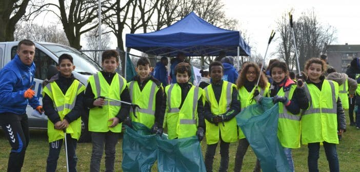 Vol enthousiasme gingen bijna zestig leerlingen van basisscholen El Feth en De Grebbe donderdagmiddag aan de slag om de wijk te ontdoen van zwerfafval.