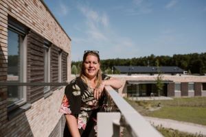 Het nieuwe woonwerkcomplex voor 72 mensen met een verstandelijke beperking van Triade Vitree is in januari 2022 opgeleverd. Bianca Gesman (37), coördinerend medewerker bij Triade Vitree, geeft een rondleiding over het terrein. Bianca werkt al vanaf haar zeventiende in de zorg. Nooit eerder was ze zo enthousiast over een woon- en werkplek. ‘De opzet en bouw van dit wooncomplex is er helemaal op gericht om de bewoners en de medewerkers zoveel mogelijk comfort en veiligheid te bieden’ licht ze toe. ‘Dat komt onder meer terug in de overzichtelijkheid en ruime opzet van het terrein en de woningen.’