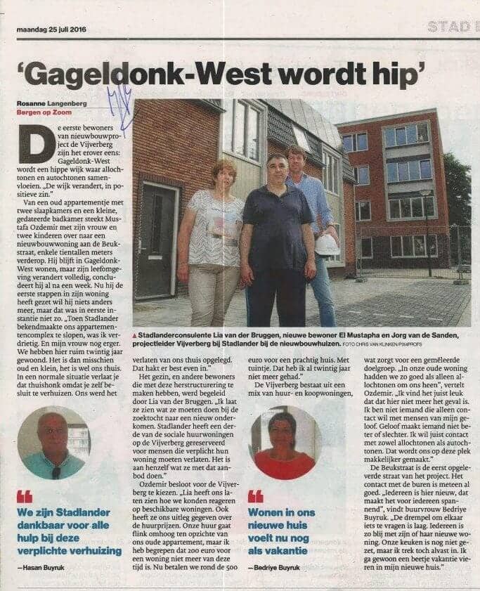 De Stem heeft een mooi artikel geplaatst over ons project Gageldonk-West in Bergen op Zoom!